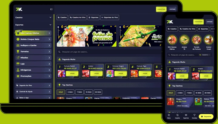 Na 7K Bet, disponibilizamos uma ampla variedade de produtos de alto nível, incluindo Sportsbook, Apostas Ao Vivo e Cassino, aliados a serviços de excelência como suporte ágil, transações rápidas e seguras e recursos de jogo responsável.